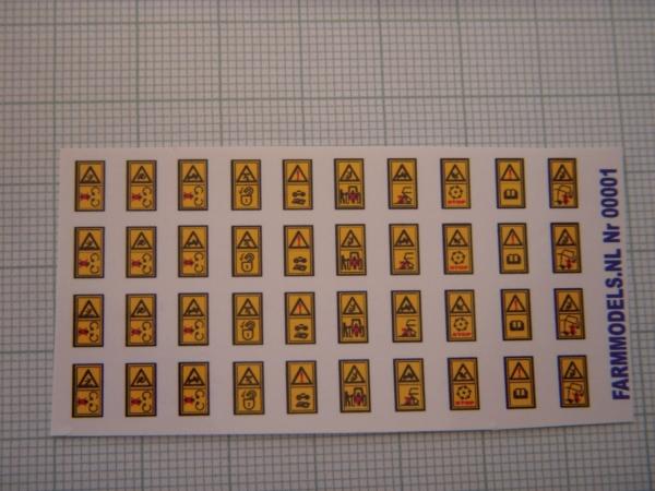 40 autocollants signalétique pour machines agricoles. Dimensions 6mm par 3.5mm.