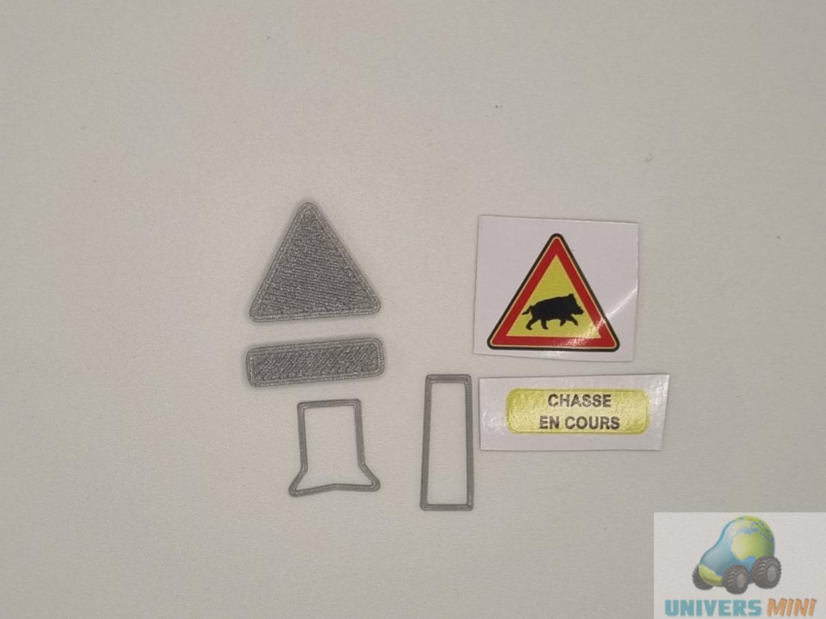 Panneau provisoire Chasse en cours en kit (petit). Correspond à un panneau de 70cm de coté. Le kit comprend :