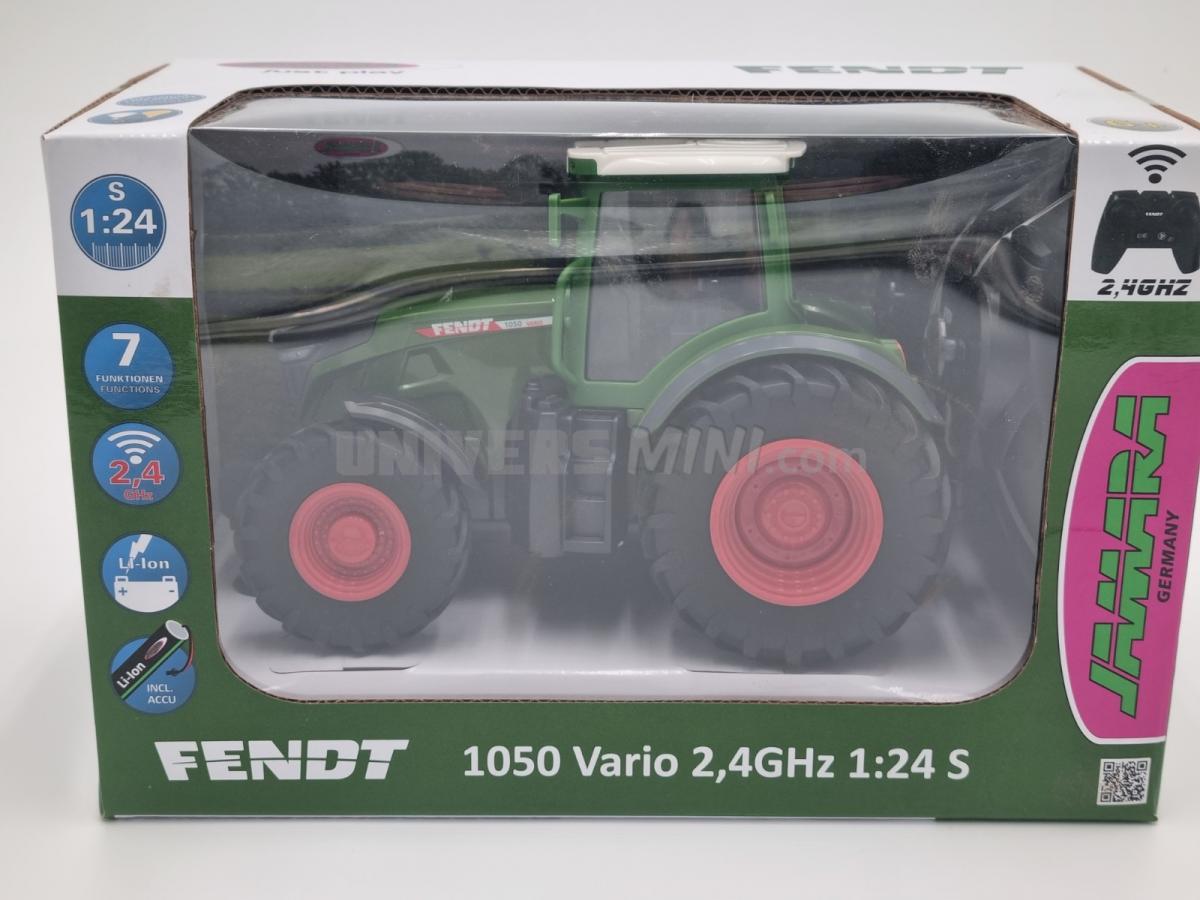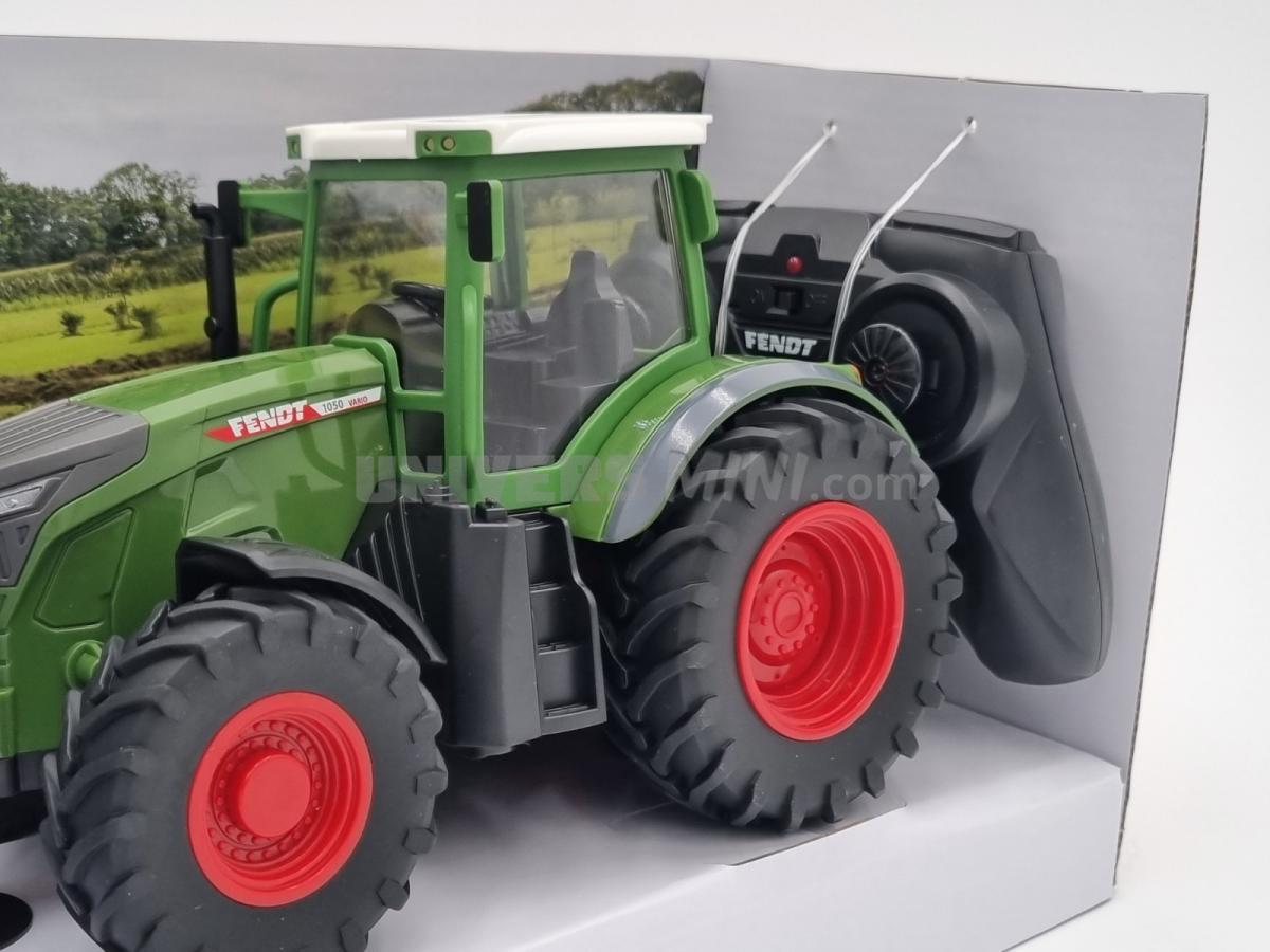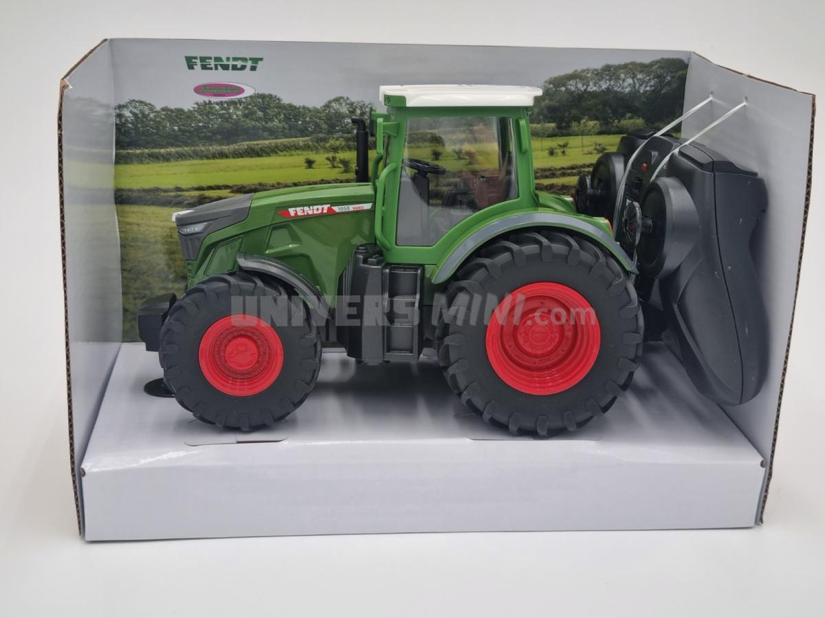 Tracteur FENDT 1050 radio-commandé. Ce tracteur Fendt 1050 Vario télécommandé à l’échelle 1:24 est robuste, réaliste et plein de surprises. Grâce à ses grands pneus, il franchit facilement les terrains difficiles. Ses lumières LED le rendent spectaculaire, même dans le noir, et sa cabine détaillée rappelle un vrai tracteur de collection.