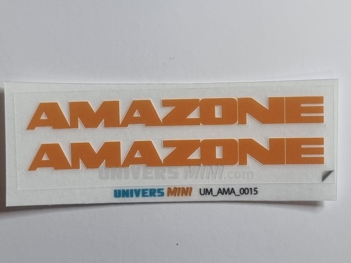 2 autocollants logo AMAZONE orange contour blanc. 6x64mm. Pré-coupés, décollez et collez comme un autocollant classique ou utilisez la méthode décalque.