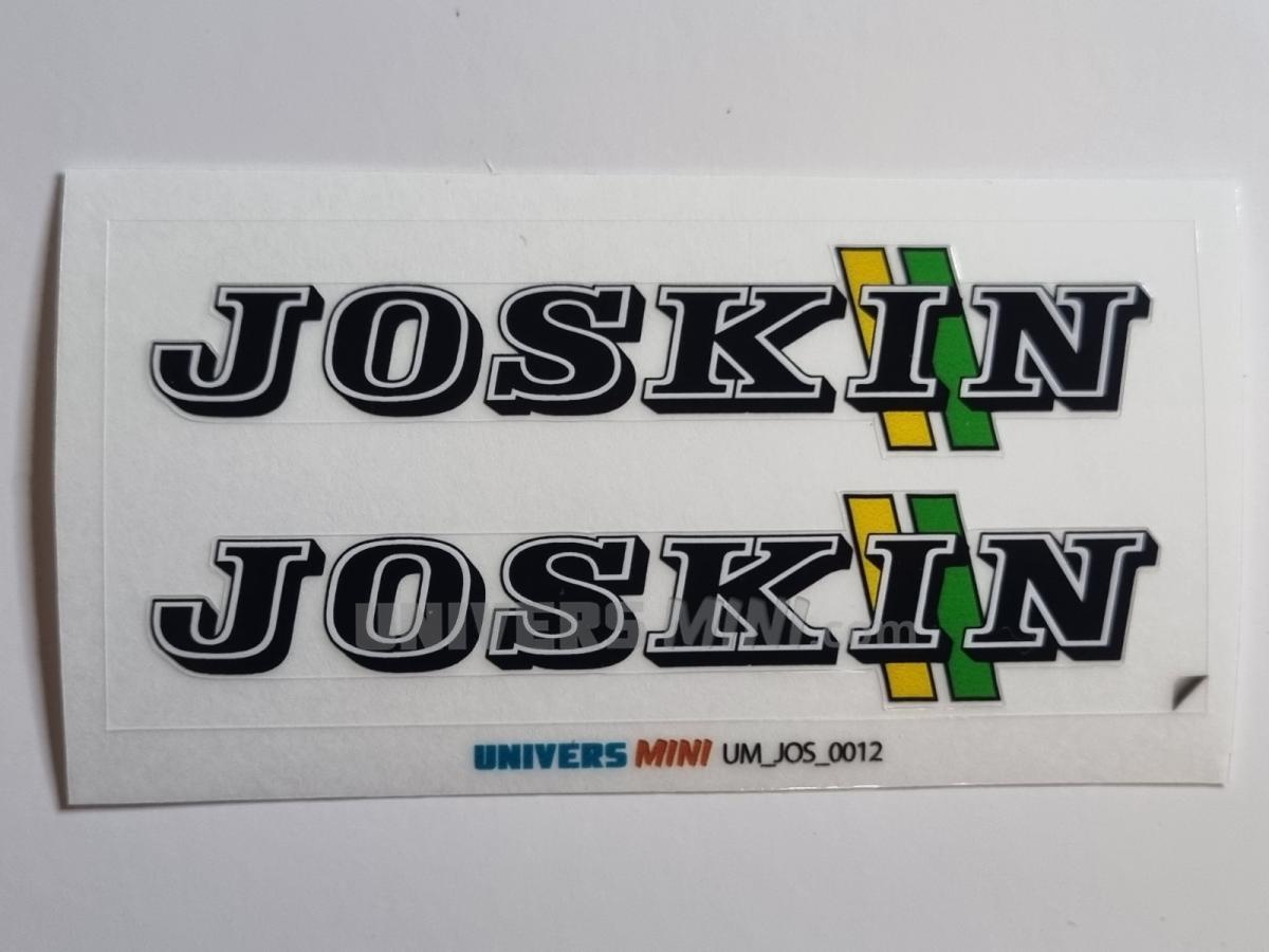 2 autocollants logo JOSKIN bande vert/jaune. 15x72mm. Pré-coupés, décollez et collez comme un autocollant classique ou utilisez la méthode décalque.
