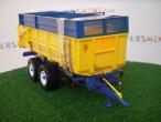 Belle benne dont la caisse est en plastique, donc poids moins élevé, par contre le vérin est absolument catastrophique , il se plie dans tout les sens, et tient très peu en position haute, et le fait qu'il soit en plastique creux n'arrange pas la chose. Autrement à part ce défaut c'est une belle remorque quand même : porte arrière ouvrante, béquille, échelle dépliable, essieu directeur ( il braque très peu mais il a le mérite d'être présent) ainsi que des feux. Cette benne reste malgré tout une belle pièce.