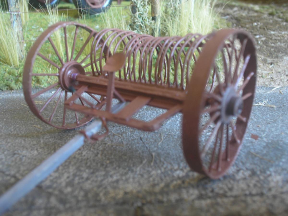 Andaineuse ancienne avec attelage pour tracteur.