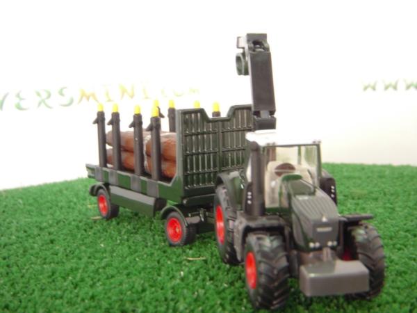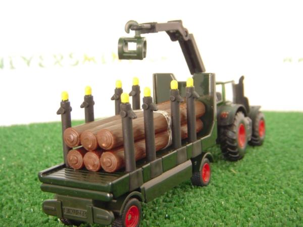 Siku est le fabricant que je regarde en premier. Le tracteur et la remorque sont parfaits. Echelle 1/87 (HO) idéal pour un décor ferroviaire. Par la suite, on peut mettre du vrai bois dans la remorque et trouver un chauffeur pour le mettre au volant.