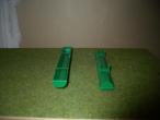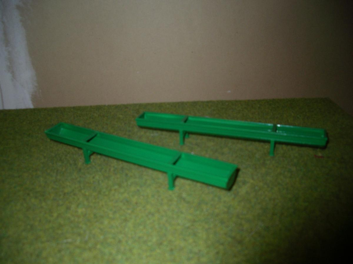 2 AUGES A BOVINS EN MÉTAL ET PLASTIQUE,PEINTURE VERTE .LONGUEUR 16 cm LARGEUR 2 cm ET HAUTEUR 2 cm ,NOUVEAUX PIEDS.