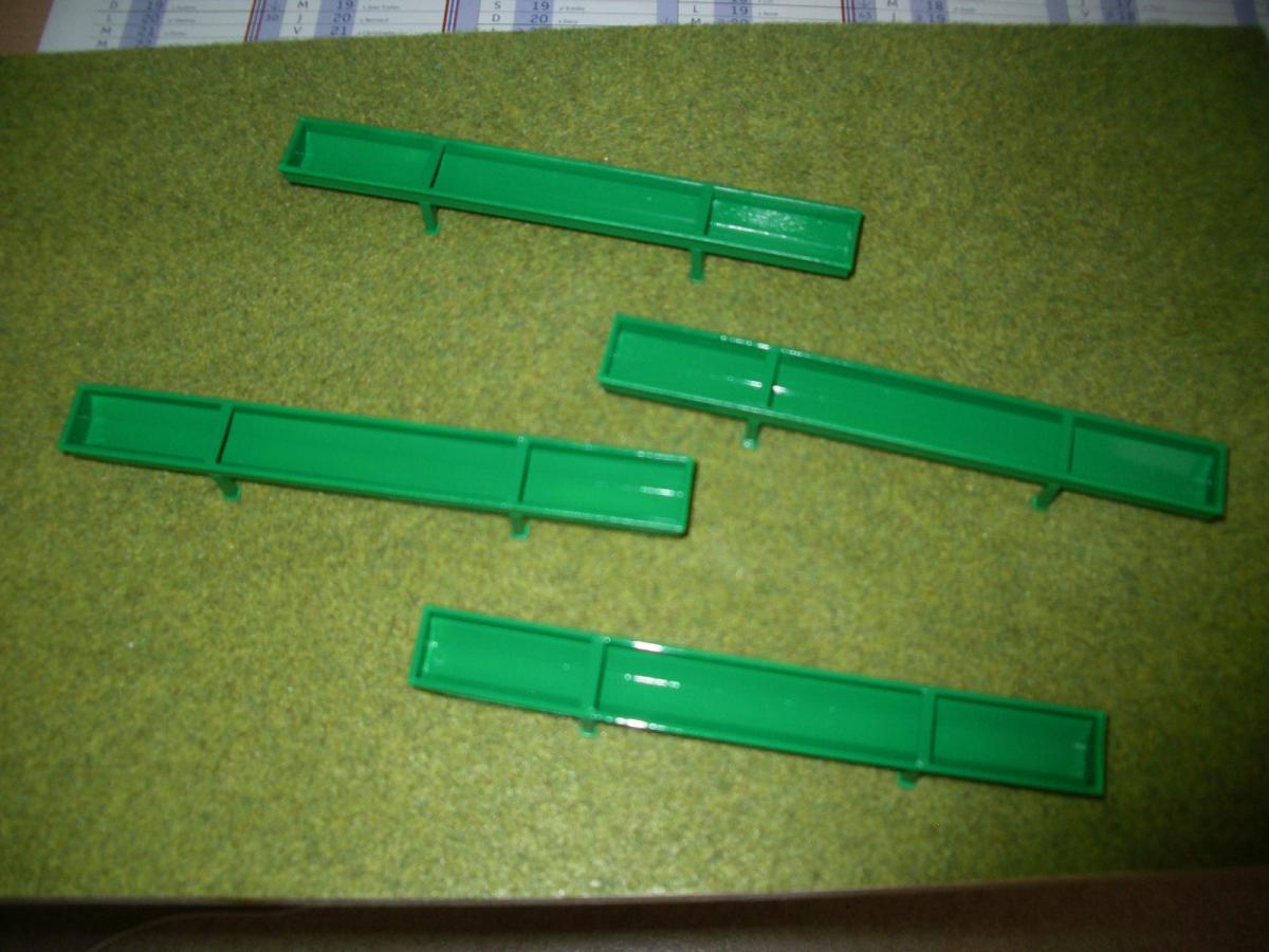 4 AUGES A BOVIN EN MÉTAL ET PLASTIQUE,PEINTURE VERTE .LONGUEUR 16 cm LARGEUR 2 cm ET HAUTEUR 2 cm ,NOUVEAUX PIEDS.