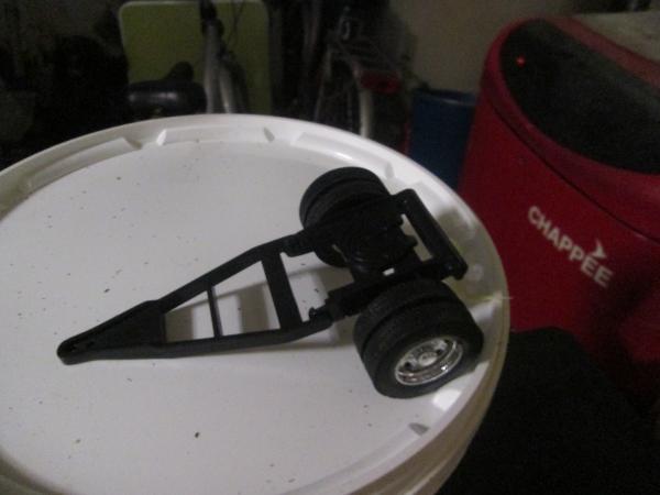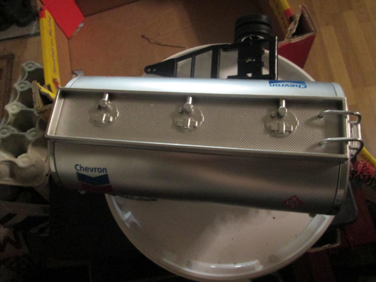 longueur = 29 cm avec la flèche,largeur de la cuve = 8.5 cm et hauteur totale = 11 cm ,l'essieu se décroche pour l'atteler directement sur un camion