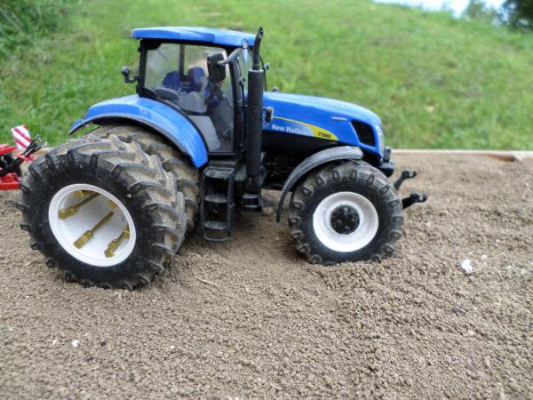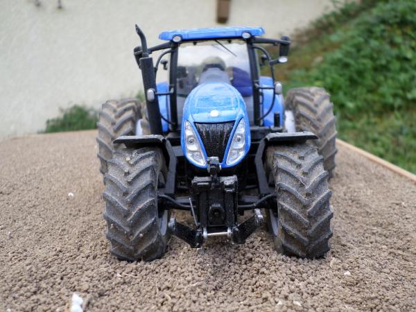 tracteur ayant subi quelque choc et donc ayant perdu certain caractéristique, en effet il lui manque ses deux gyrophares, de plus le troisième point à été casser mais j'en fait un nouveau, on peut donc toujours atteler les accessoires compris dans la boite :