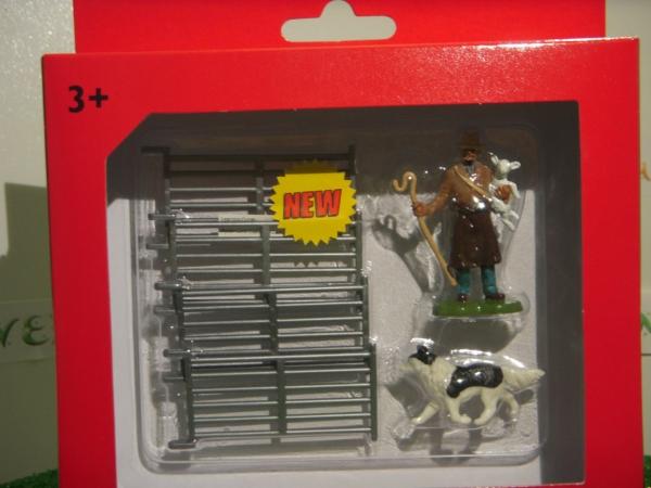 Ensemble berger composé d'un berger et de son chien et de 4 barrières.