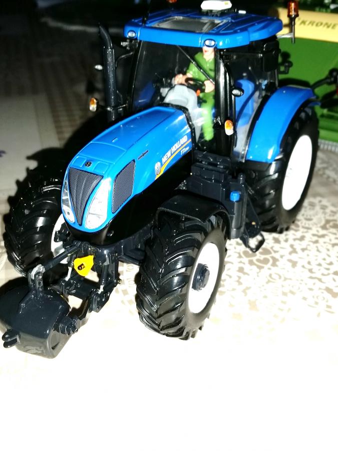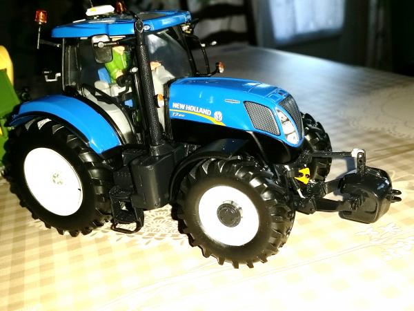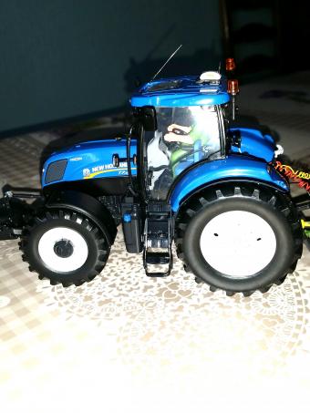 Tracteur New Holland 7210 de marque Universal Hobbies UH2996 avec ajout d'un chauffeur en parfait état avec 2 pare soleil New Holland offert