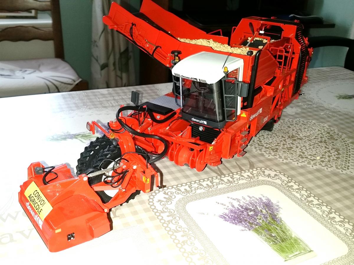 Arracheuse pomme de terre Dewulf RA3060 avec ajout panneaux convoi agricole et imitation pomme de terre fournie en excellent état