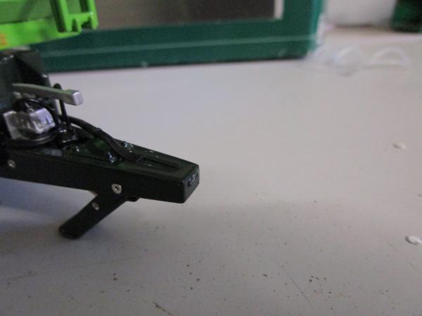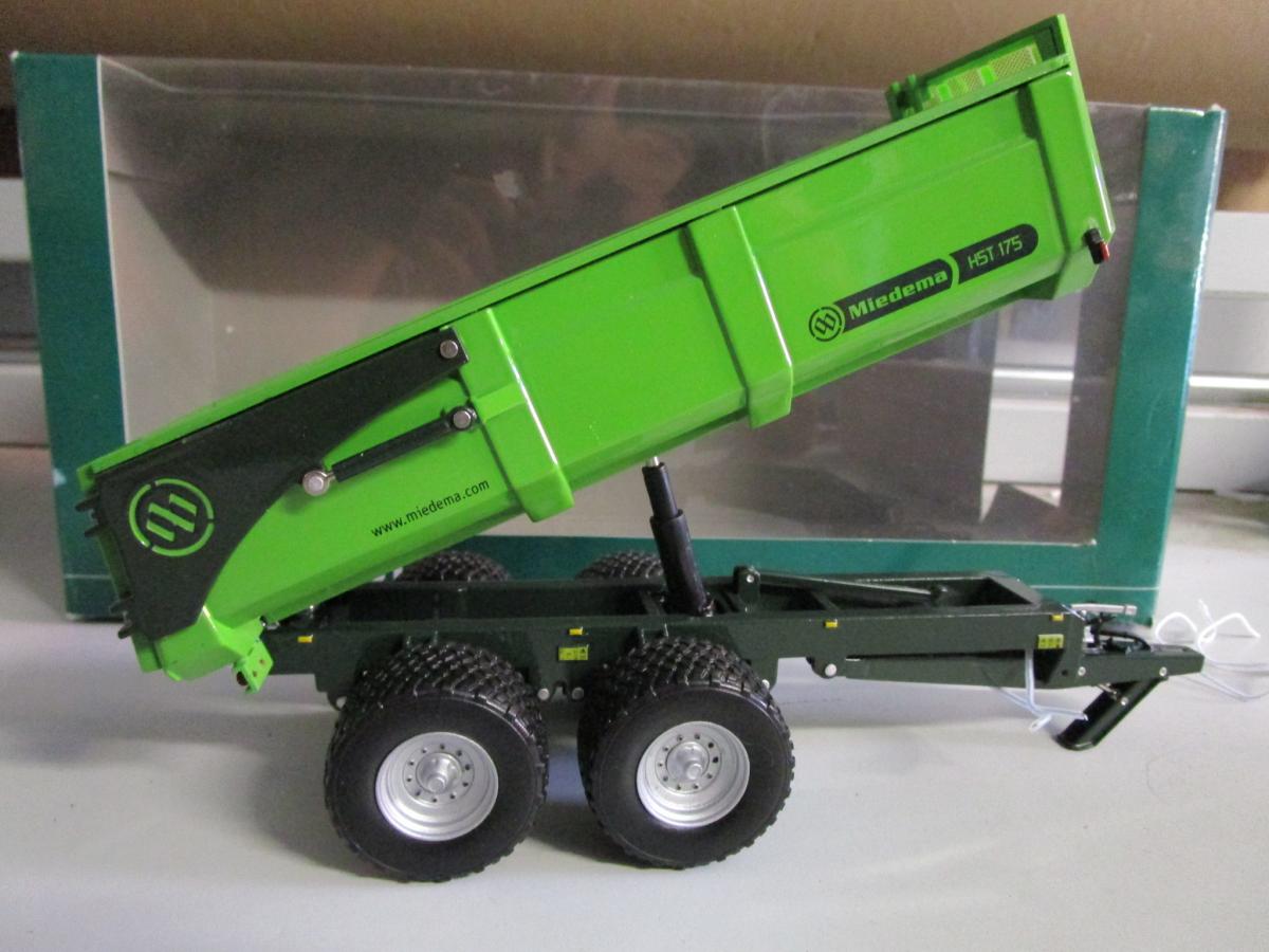 Article déclassé. Un rivet qui maintient la caisse de la benne est déboité à l'arrière. Le crochet d'attelage est cassé (manquant). (1018)