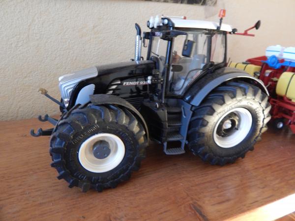 fendt black beauty 939 roue trelleborg jante en blan avec 2 claxon trompete et 2 bibendum michelinen haut et devant cabine et stiker fendt en haut du par brise avant