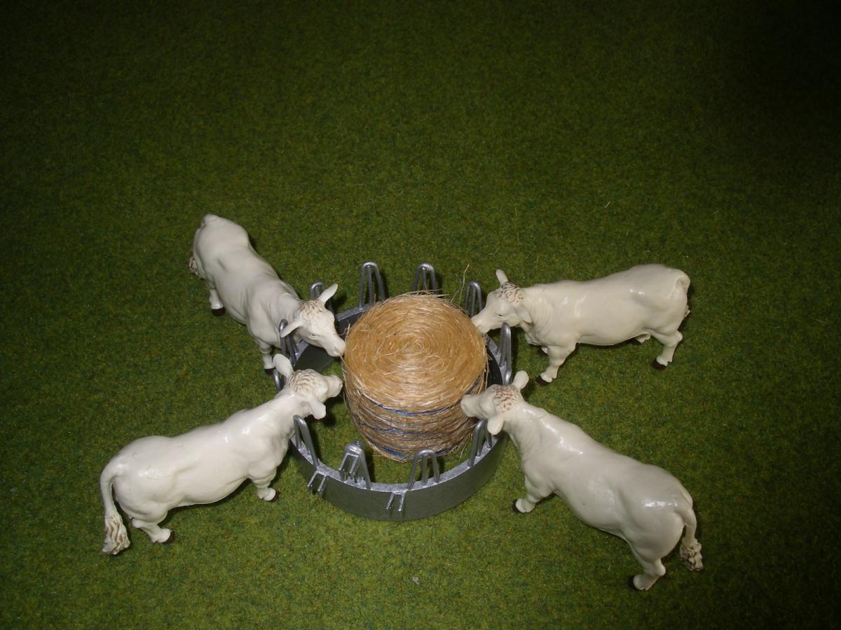 RÂTELIER A BOVINS CIRCULAIRE EN PLASTIQUE. ATTELAGE 3 POINTS ,POSSIBLE D'UN ADAPTATEUR POUR AUTRE TRACTEUR ( non fourni dans la vente),PAS DE FOND. LES ANIMAUX ET LA BOTTE NE SON PAS A VENDRE. POUR VOIR MAIS AUTRES MODÈLES TAPEZ SUR MON PSEUDO