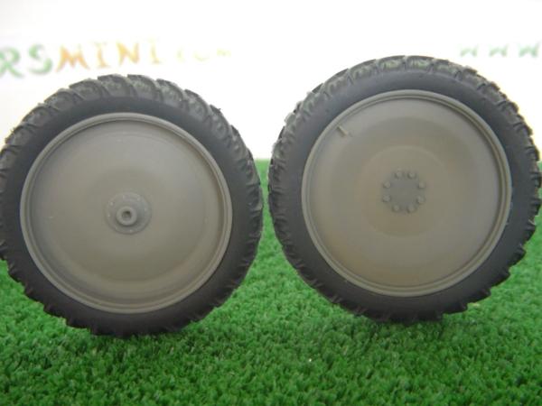 2 roues étroites arrière n°3. Pour tracteur de grande puissance. Diamètre jante : 42 mm. Diamètre Pneu : 55 mm. Largeur pneu : 8 mm. A monter et à peindre.