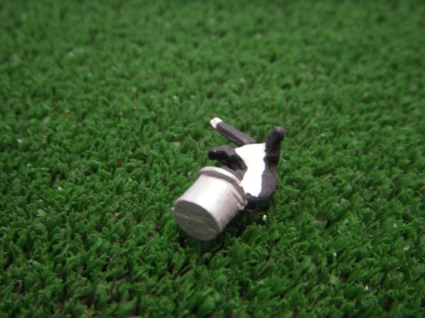 Chat noir avec tête dans un seau en position couché.