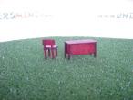 1 bureau en bois, 3 tiroirs (36mm x 17mm x 20mm) + 1 chaise en bois (15mm x 15mm x 25mm). Modèle réalisé à la main, de précision, réalisé par Paulo Miniaturen.