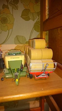 Plateau à paille Vanto,tourelle avant 1 essieu arrière,vendu avec des bottes de paille en plastique