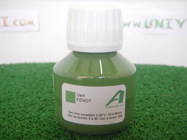 Peinture aérographe vert FENDT. Peinture synthétique prête à l'emploi. Contenance environ 30 ml. Conservation minimum 1 an. Recommandé pour aérographe ou pistolet.