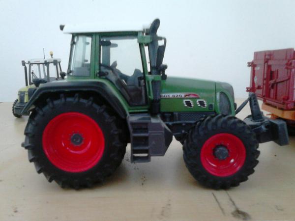 fendt 820 vario tms , manque les gardes boues avant ; feux de travail arriere gauche sur cabine cassé , trois points recollé , manque girophare ; rajout d'un pare soleil fendt
