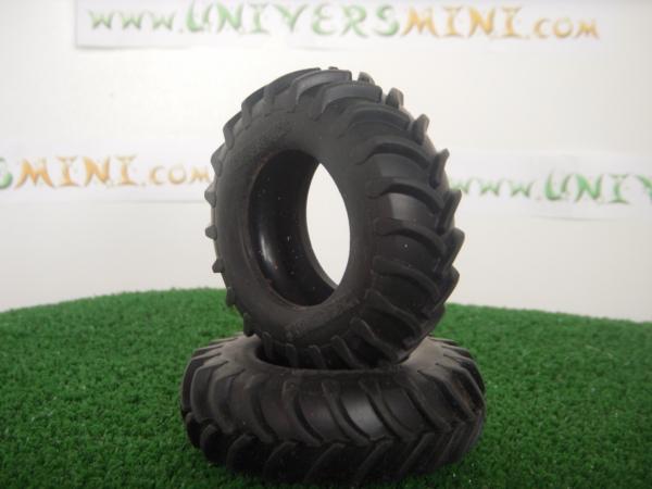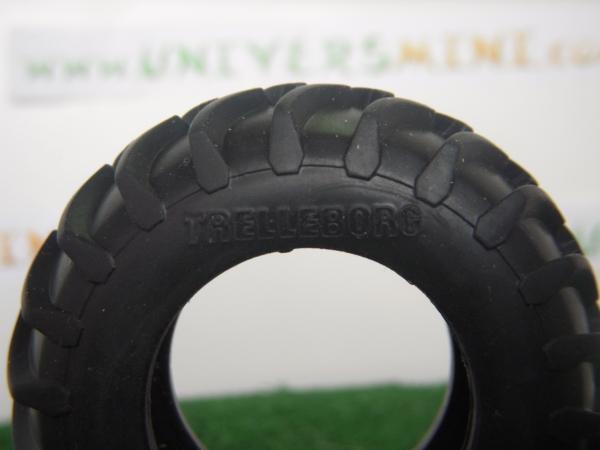 2 pneus arrière pour tracteur FENDT 936 du fabricant Wiking. Référence 7301. Diamètre : 6.6 cm. Largeur : 2.2 cm.