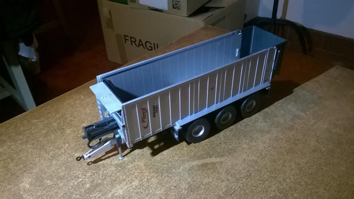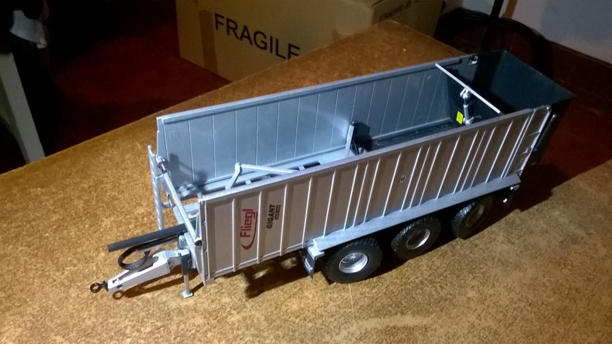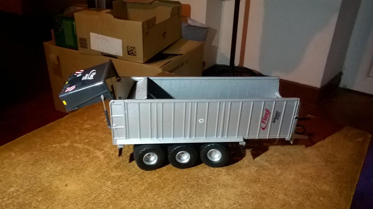 remorque Fliegl fond poussant ASW 288 ( 3 essieux ) couleur du fond et de la porte noir, marque wiking Ref 0773 13, avec pièces de rechange non utilisées