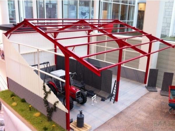 Bâtiment style métal en kit 3 travées. A monter et à peindre. Ce bâtiment possède une charpente très finement réalisée, très détaillée, style métallique.