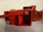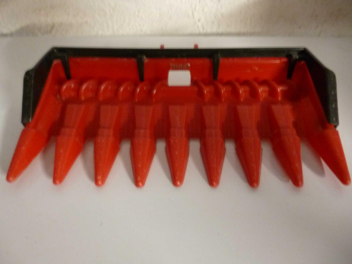 Moissonneuse batteuse : absence de peinture au niveau de la barre de coupe et éclat de peinture à l'arrière, pneu arrière lisse, impact sur le dessus de la cabine