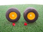 2 roues pour remorque jante jaune + cache moyeu. Diamètre 30.1 mm. Largeur 16.7 mm.