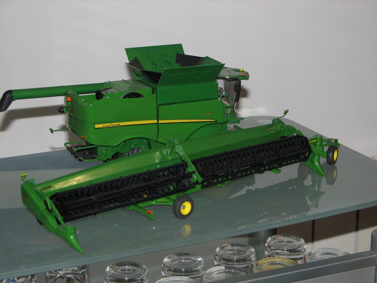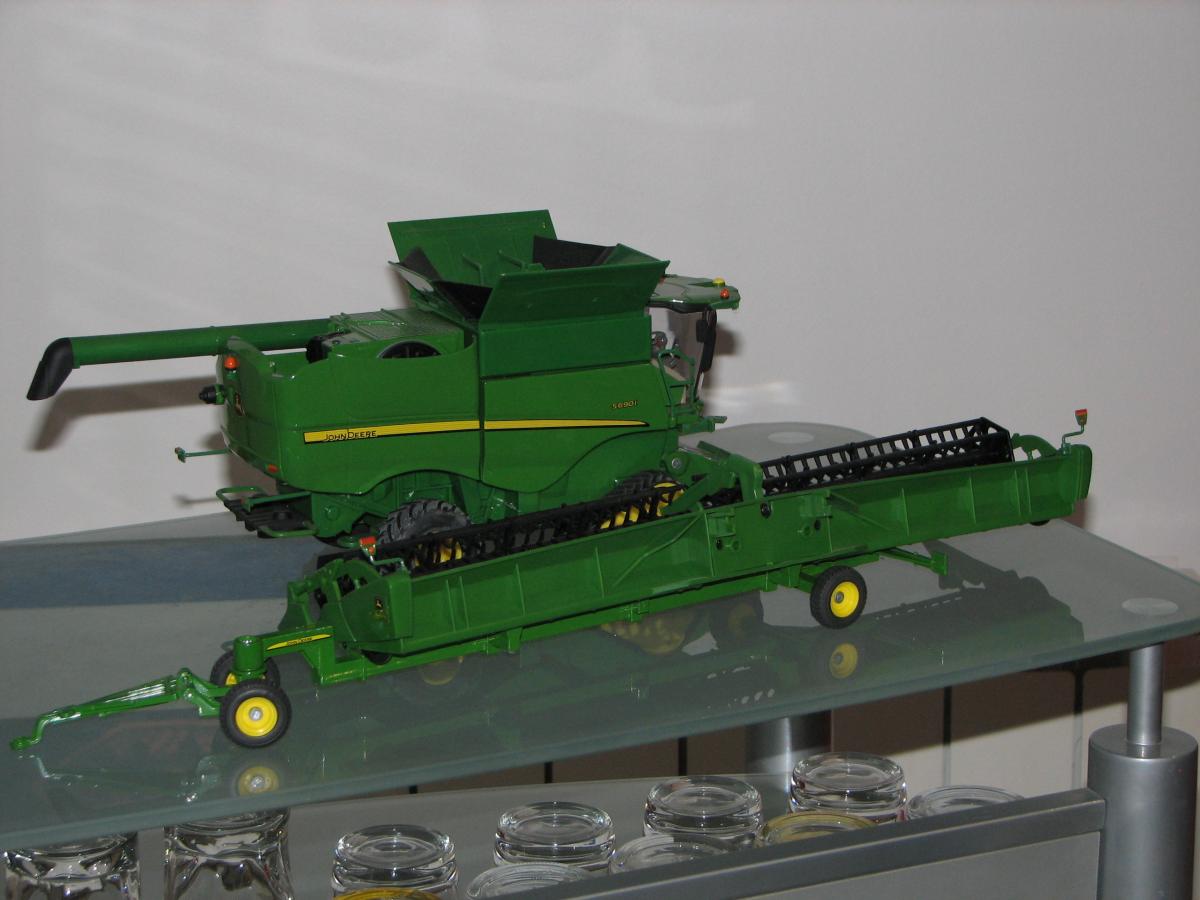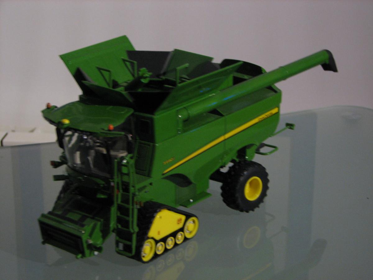 JOHN DEERE S 690 I CHENILLE AVANT AVEC COUPE ET CEUILLEUR REF 42845 2 CHARIOTS DE COUPE SIKU REF PD9059