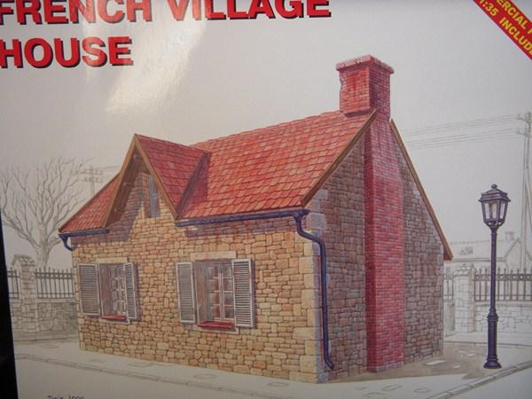 Maison de village (1944). Longueur : 250 mm, largeur : 180 mm, hauteur : 200 mm. Échelle 1/35ème mais convient parfaitement au 1/32ème. A monter et à peindre.