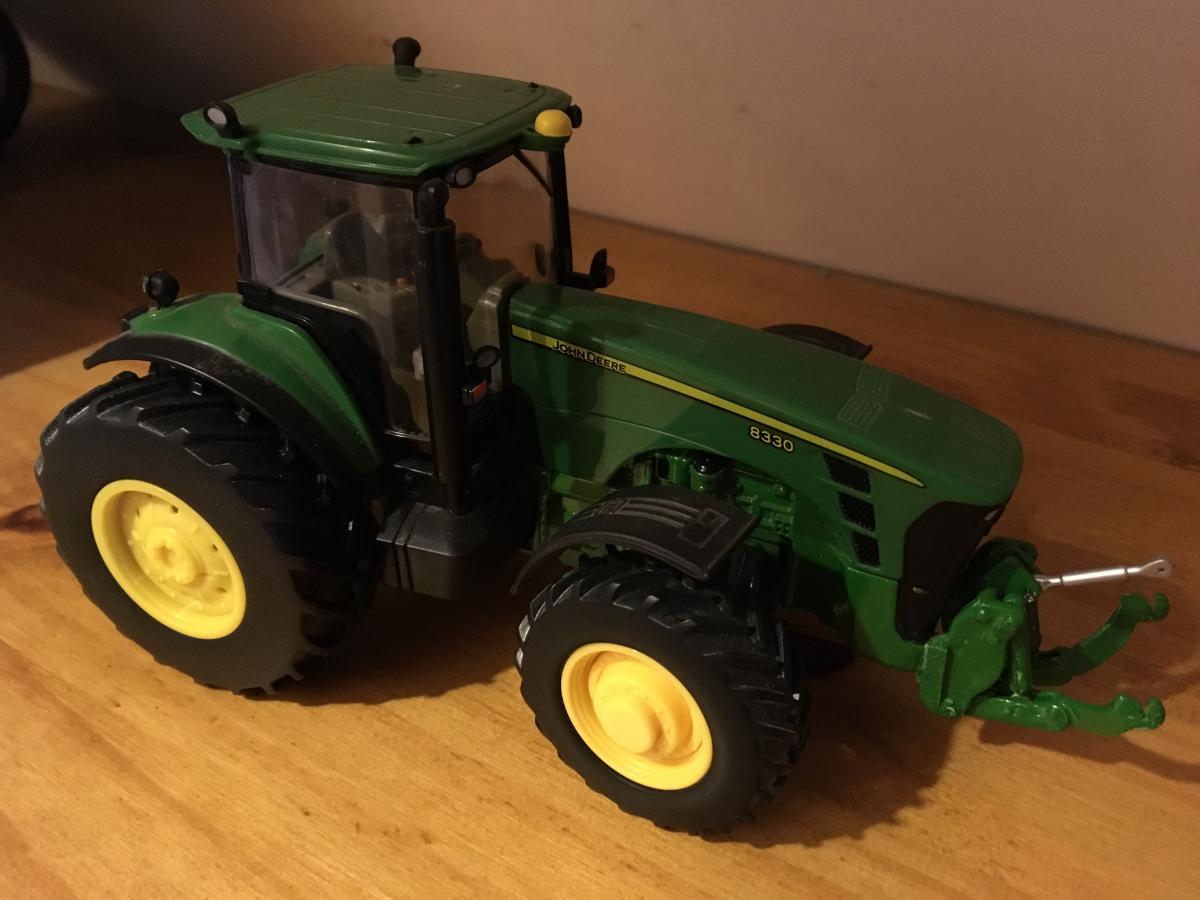 John deere 8330 Britains en très bon état, roues arrière du 7930, relevage avant, sans rétro ni gyrophare. vendu sans boîte, envoi soigné !