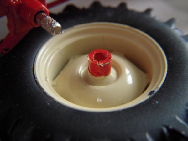 - une roue arrière ne tient pas visée. L'embout sur la roue est légèrement fissuré.