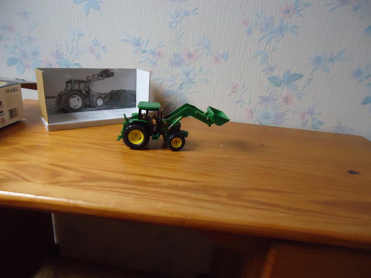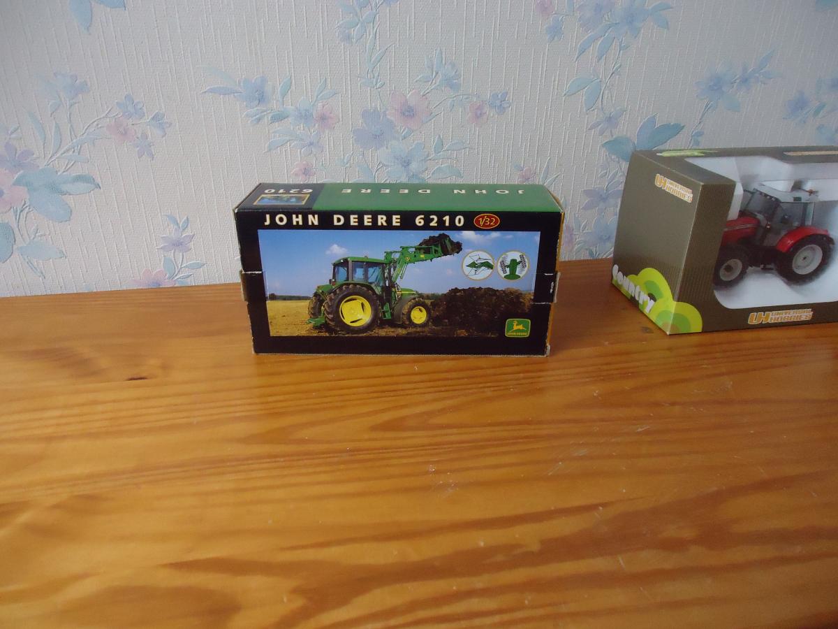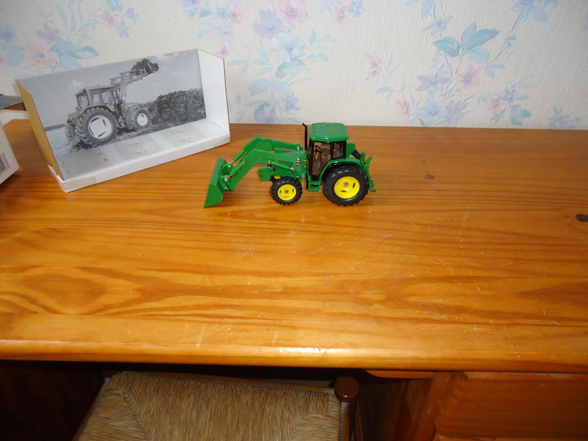 Tracteur JOHN DEERE 6210 avec chargeur et godet, état proche du neuf en boite d'origine. Ouvert une fois et remis dans sa boite.