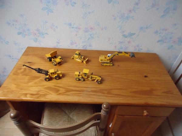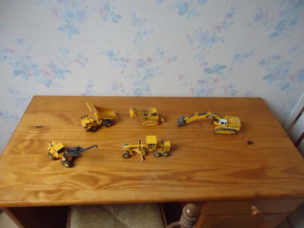 Lot de 5 machines TP au 1/50 VOIR PHOTOS: 3 Caterpillar trax 955c/niveleuse 1 vérin a réparer/tombereau, une pelle Liebherr 1150 et un chargeur Volvo BM le tout en bon état mais prévoir un dépoussiérage. La pelle n'est pas du fabriquant Joal.