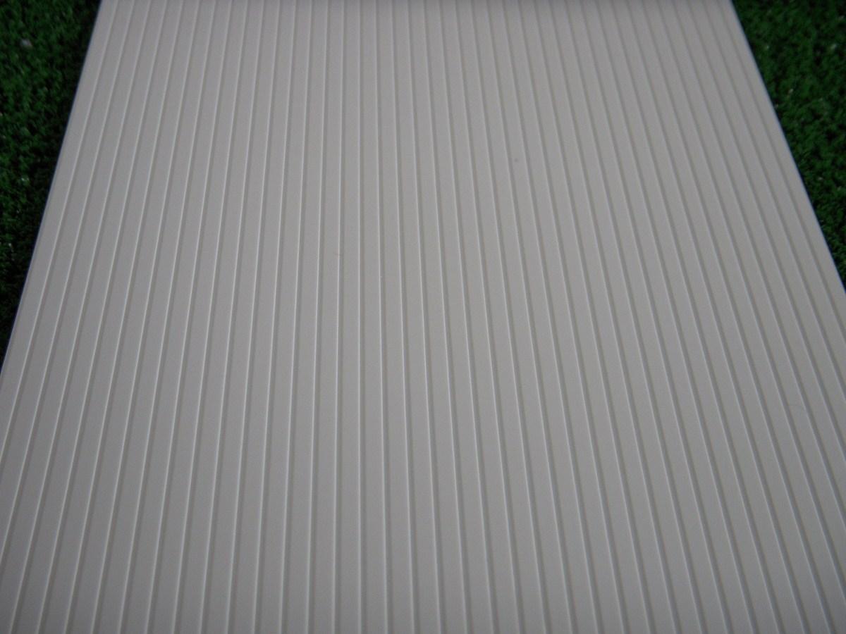 1 plaque styrène blanc rainurée dans le sens de la longueur. Longueur: 300mm Largeur: 150mm. Épaisseur: 1mm. Écartement entre les rainures: 1.5mm. L'écartement entre les rainures est mesuré de centre à centre.