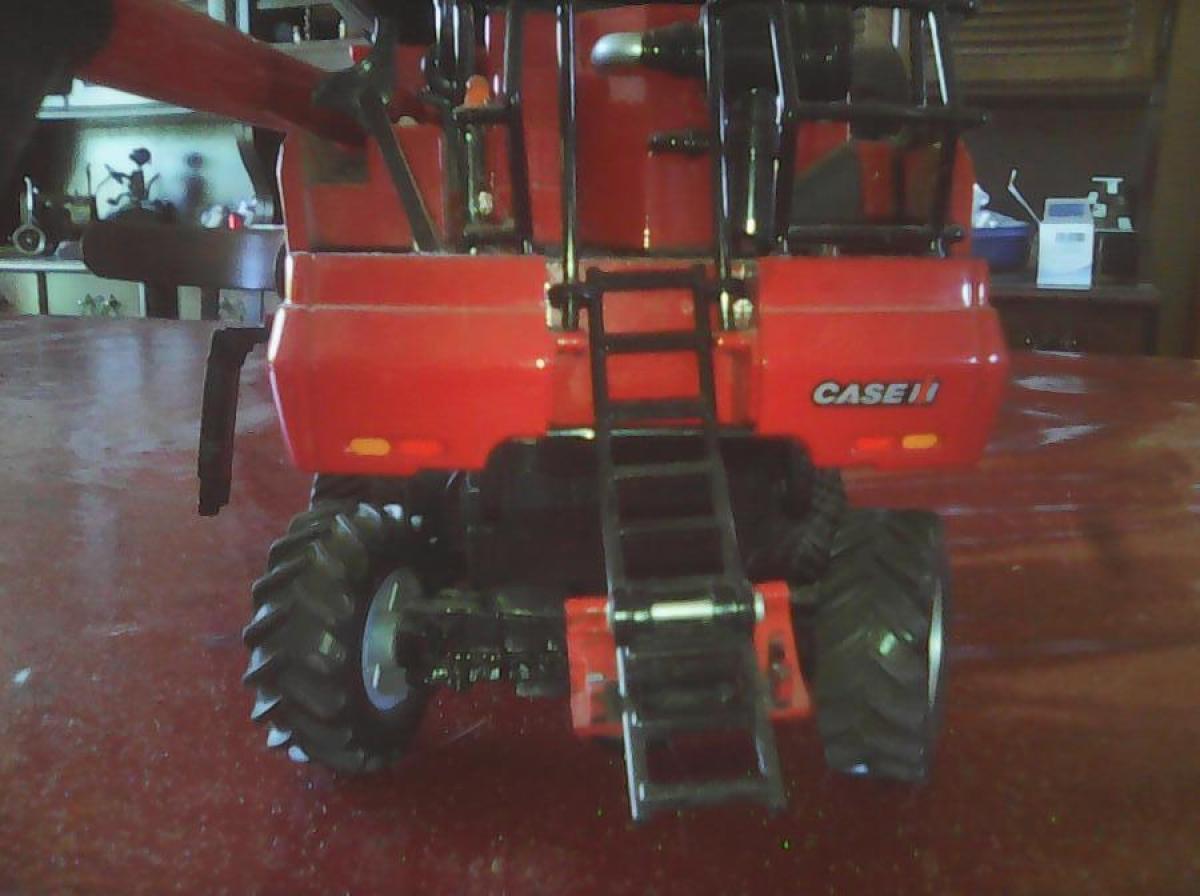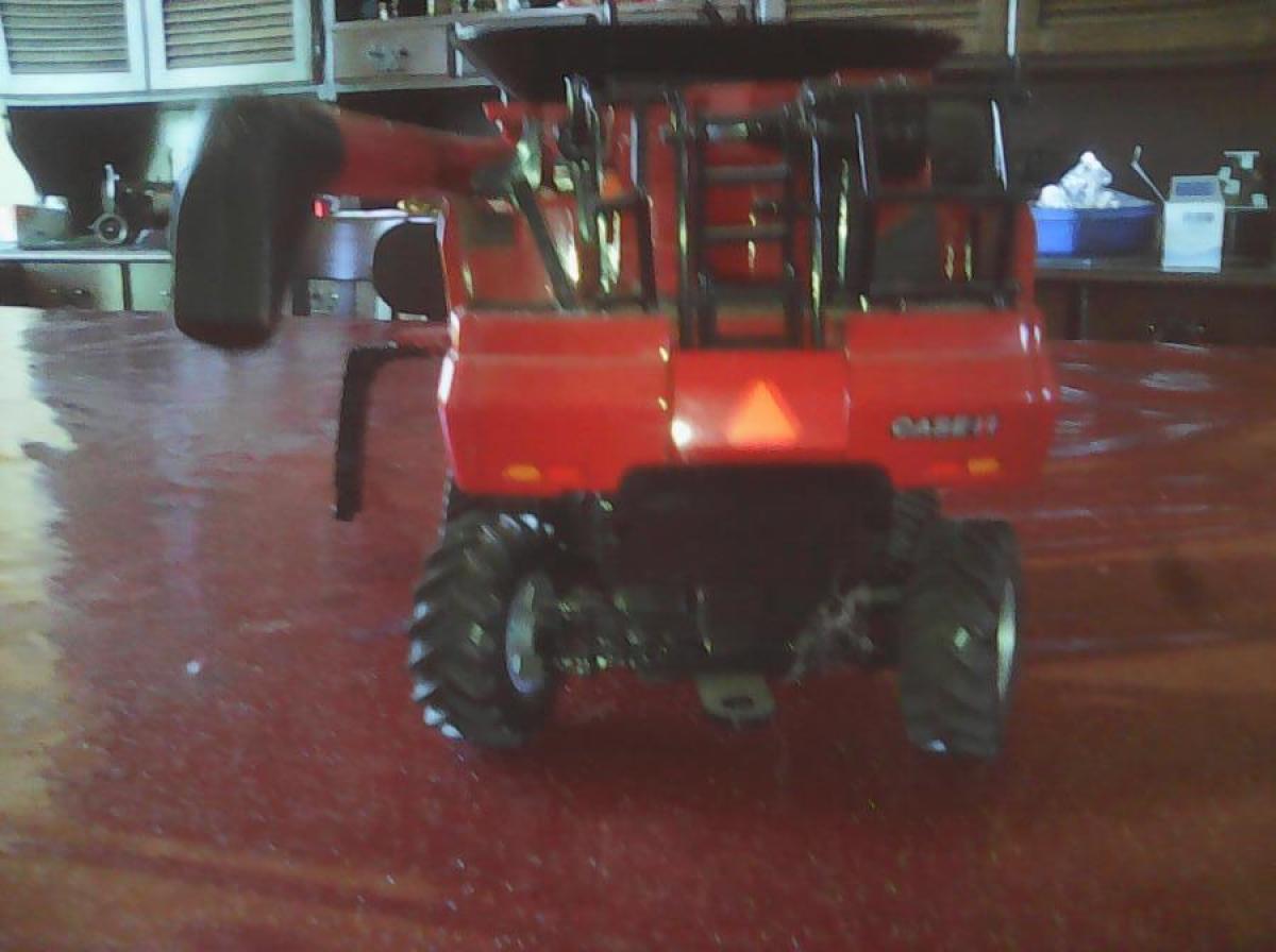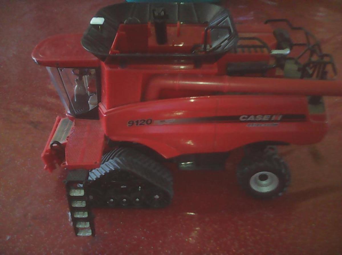 sur chenille avec coupe à maïs et à céréales, ne possède pas de chariot de coupe. Manque les grade corps coté gauche, les rétroviseur et les gyrophare.