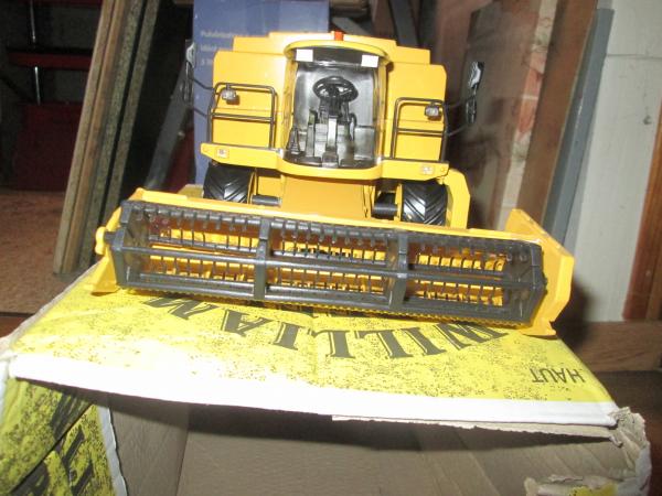 avec feux arrière et panneaux de sécurité , la goulotte ne tient pas très bien en position dépliée et pas de vérin pour lever la coupe, c'est d'origine