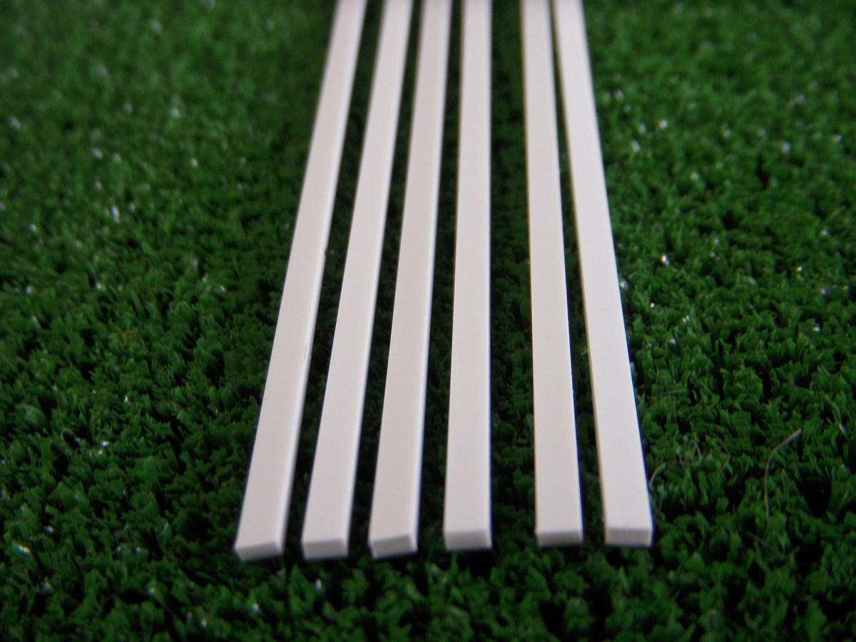 Profilés styrène rectangle plein. Longueur:355mm. Épaisseur:3.2mm. Largeur:4mm. Lot de 6.