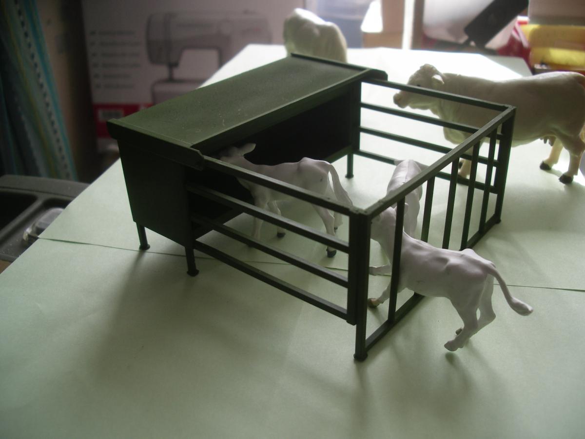 NOURRISSEUR A VEAUX EN MÉTAL ET PLASTIQUE,SE MODÈLE CORRESPOND A UN NOURRISSEUR DE 3 MÈTRES EN VRAI.