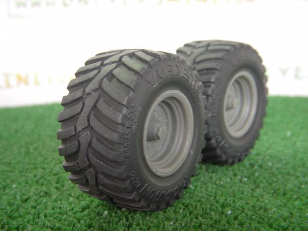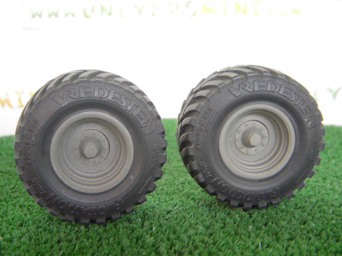 2 pneus Vredestein 800/45 R . Pneus en résine souple noir. Jantes en résine à peindre et à monter. Hauteur: 46.5mm. Largeur: 25mm.