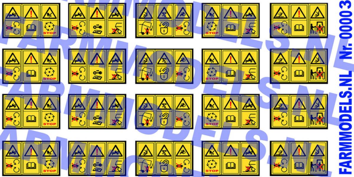 20 autocollants signalétique pour machines agricoles. Dimensions 9mm par 6mm.