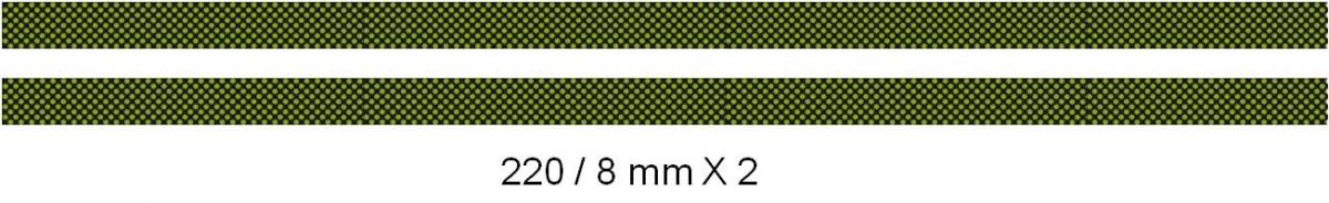 Vert Claas , 2 bandes de 220 / 8 mm ,imprimé sur du papier autocollant ,il ce peu qu'il y ai une variation avec la teinte ou le ton d'origine ,Merci d'en tenir compte