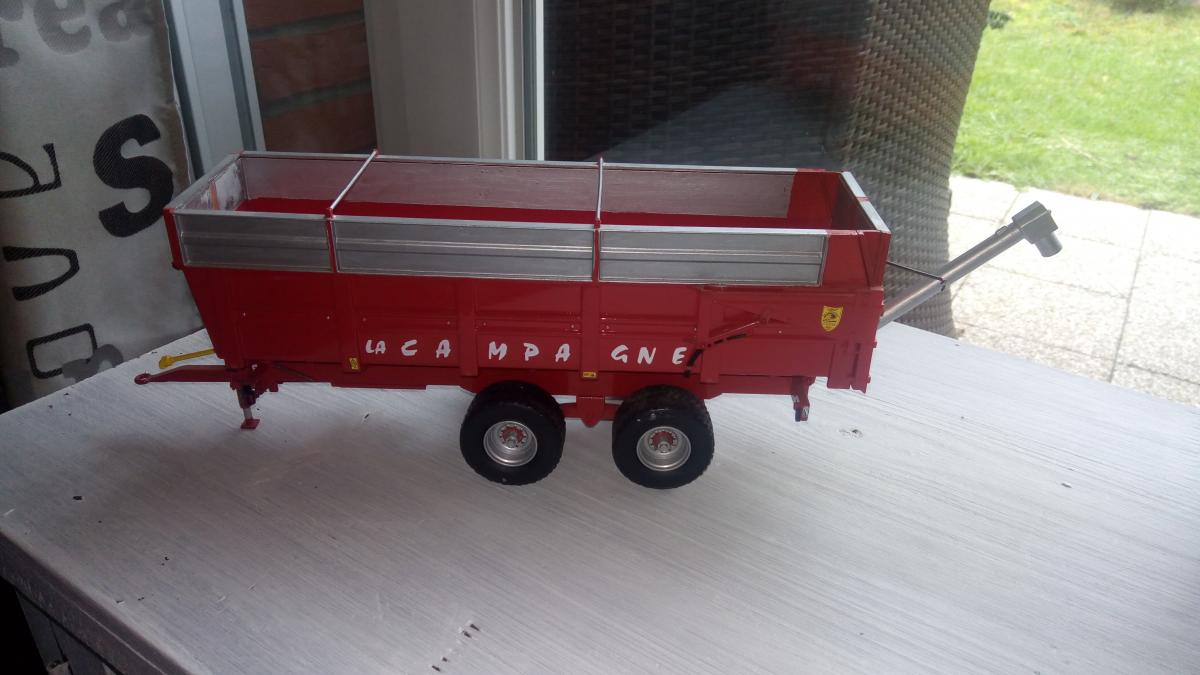 Ajout d'une vis à engrais à l'arrière pour les remplissage d'épandeur. Réhausse repeind couleur allu