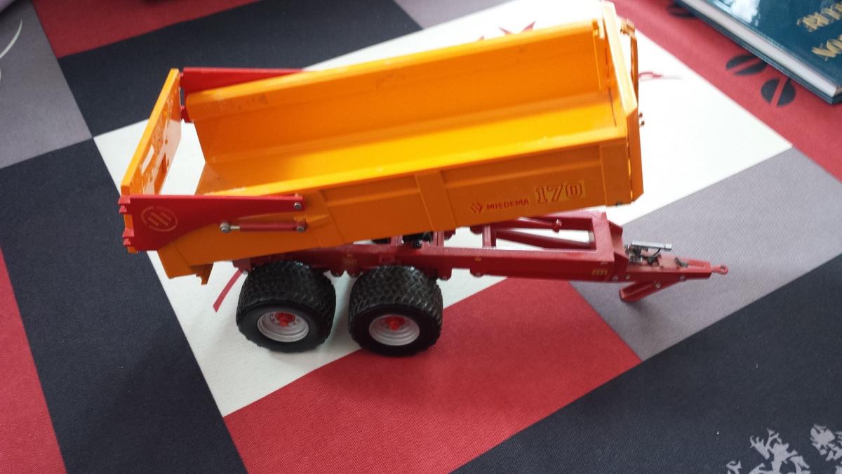 Benne MIEDEMA 170 orange et rouge, assez bon état, propre, châssis idéal pour la création d'une benne artisanale !