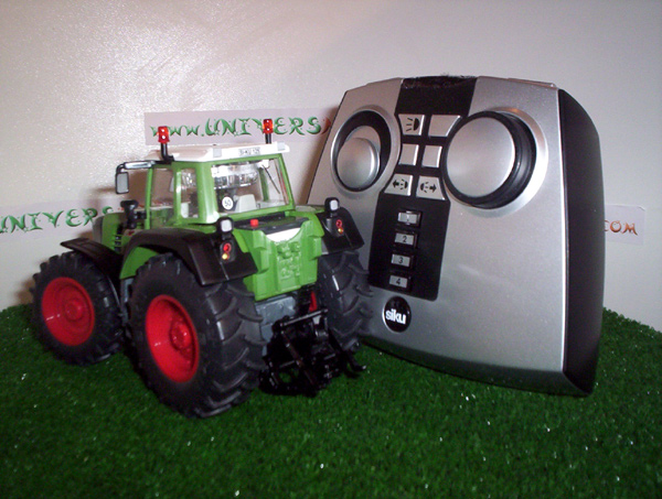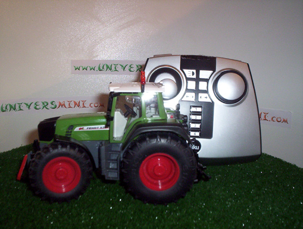 Tracteur FENDT 930 radiocommandé. Le coffret comprend le tracteur, une télécommande (fonctionne avec 4 piles LR06 (AA) non fournies), une batterie et son chargeur.