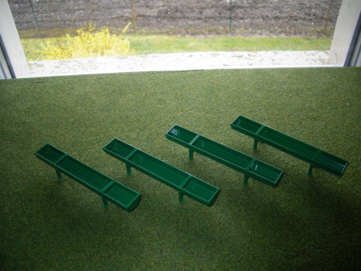 4 AUGES A BOVINS EN MÉTAL ET PLASTIQUE,PEINTURE VERTE .LONGUEUR 13cm LARGEUR 1.9 cm ET HAUTEUR 2.1 cm . AVEC VIS DE VIDANGE .D'AUTRE EN STOCK