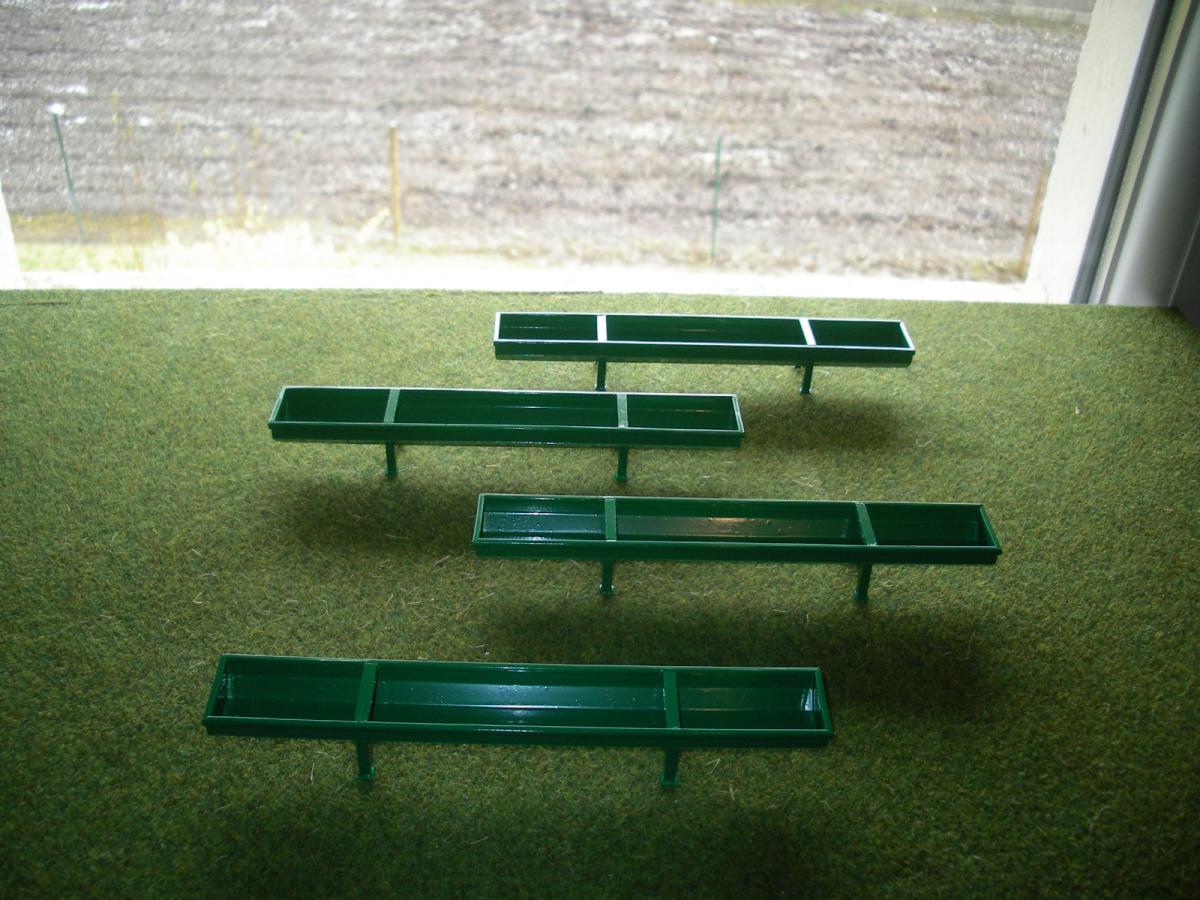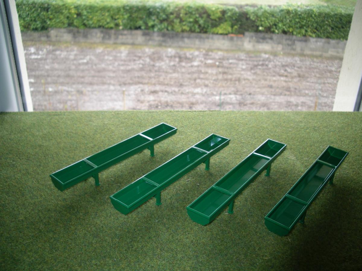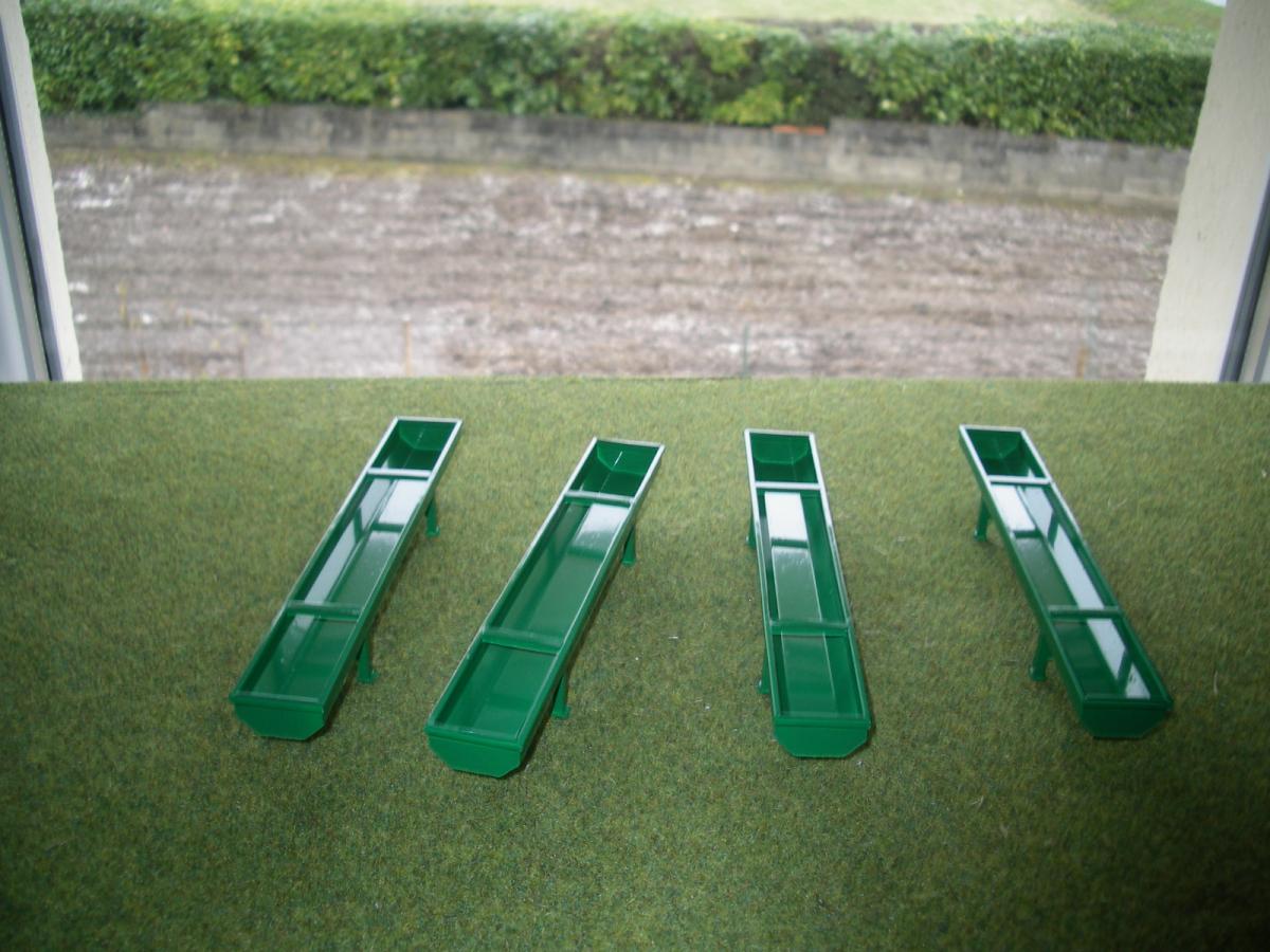 4 AUGES A BOVINS EN MÉTAL ET PLASTIQUE,PEINTURE VERTE .LONGUEUR 16cm LARGEUR 2.2 cm ET HAUTEUR 2.1 cm . AVEC VIS DE VIDANGE.D'AUTRE EN STOCK