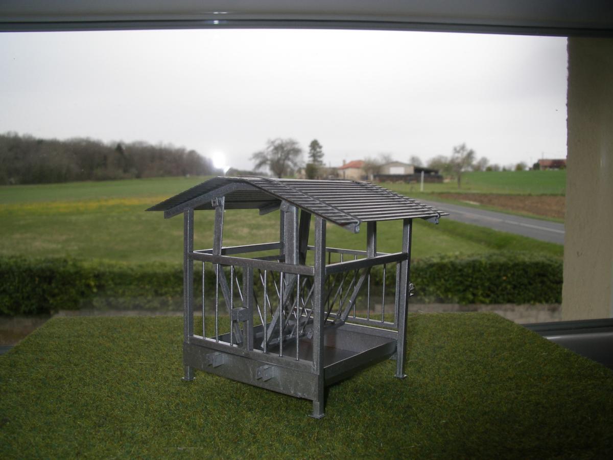 râtelier a bovins a grilles mobiles,auge et toit en métal le reste en plastique. attelage 3 points,possible de mètre un adaptateur pour autre tracteur (non fourni dans la vente). peint couleur galva . pour voir mais autres articles tapez sur mon pseudo