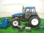 Tracteur NEW HOLLAND 8360 avec benne basculante bleu adaptable sur le relevage arrière ou avant du tracteur.